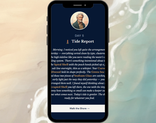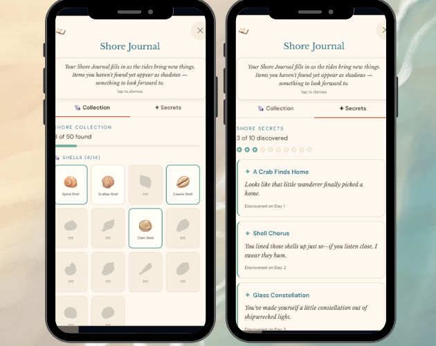 - A Shore Journal that remembers everything you've found and every surprise you've stumbled into