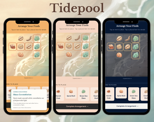 Tidepool is a small daily ritual — no scores, no timers, no fail states. Just you, the tide, and whatever it carries in today.